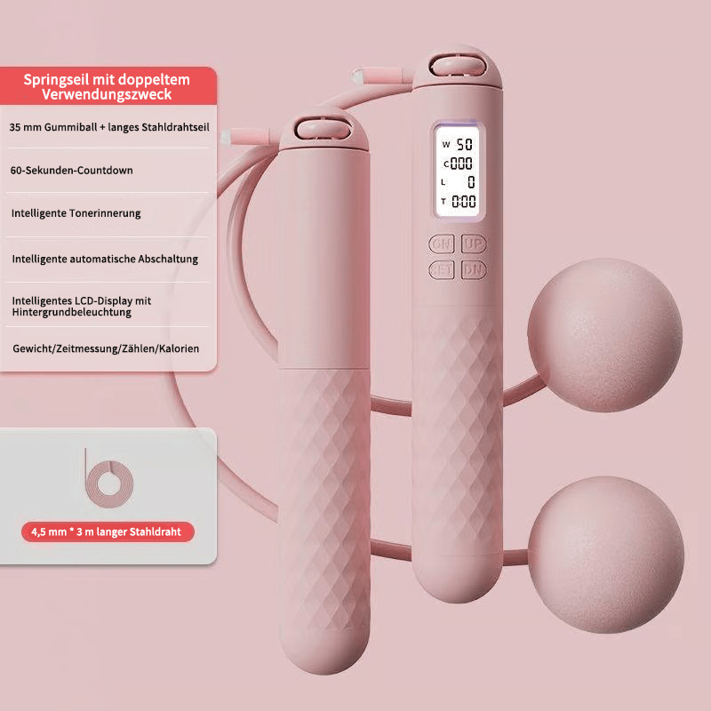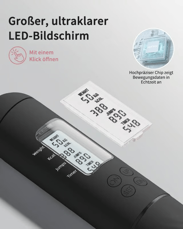 - Mit einem integrierten Präzisionszähler, der Ihre Sprünge genau zählt und die Anzahl der Kalorien berechnet, die Sie während des Prozesses verbrennen, macht es die Daten, die Sie während des Trainings generieren, verständlicher als physisches Zählen.